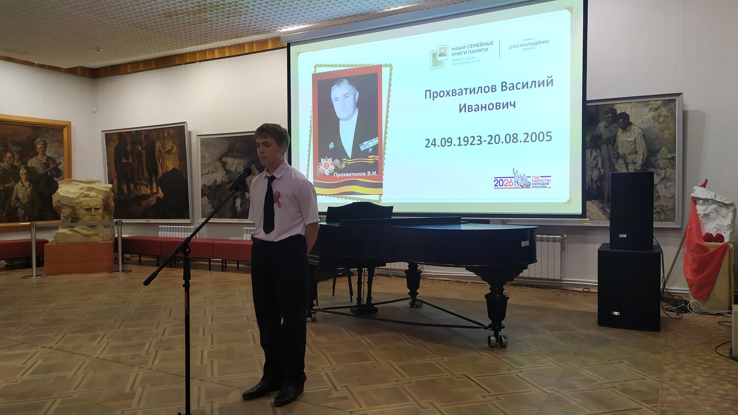 В рамках Акции была проведена большая предварительная организационная и поисковая работа, чтобы 8 апреля – в особенную дату для истории Крыма, встретиться на одной сцене. Именно в этот день в 1944 году советские войска начали победоносную операцию по освобождению полуострова от немецко-фашистских захватчиков. Она считается одной из самых успешных в Великой Отечественной войне. В Акции приняли участие глава муниципального образования городской округ Керчь, председатель Керченского городского совета Д.Колесник, заместитель Главы Администрации И.Иванова, председатель Совета ветеранов труда, Великой Отечественной войны и военной службы города Керчи В.Большаков, начальник управления образования Администрации города Керчи Е.Школьная. Акция «Наши семейные книги памяти» – важный шаг к сохранению исторической памяти о героях, которые сражались на фронтах Великой Отечественной войны. Мы должны помнить их подвиги и передавать эту память следующим поколениям. | |